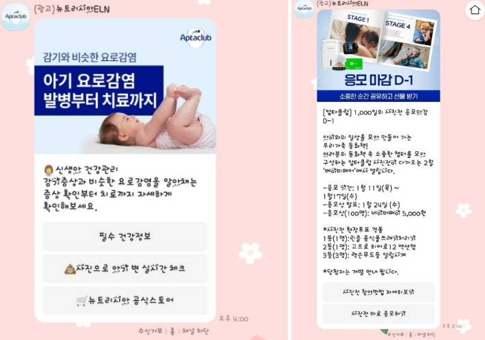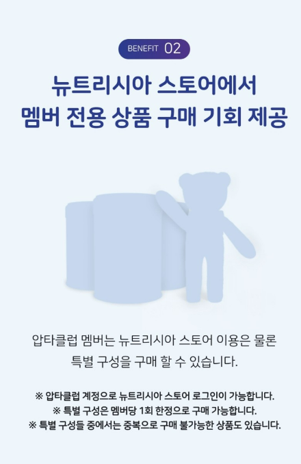 압타클럽은 압타밀 공식 제조사 "뉴트리시아"에서 임신~두돌까지 1,000일동안의 아기와 엄마의 건강한 여정을